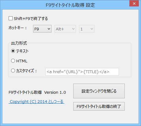 クリップボードにコピーされたURLのサイトのタイトルを取得し、クリップボードにコピー(出力)するソフトウェアです。